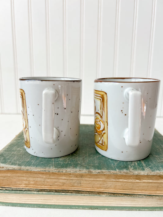 Vintage Pair Stoneware Coffee Mugs