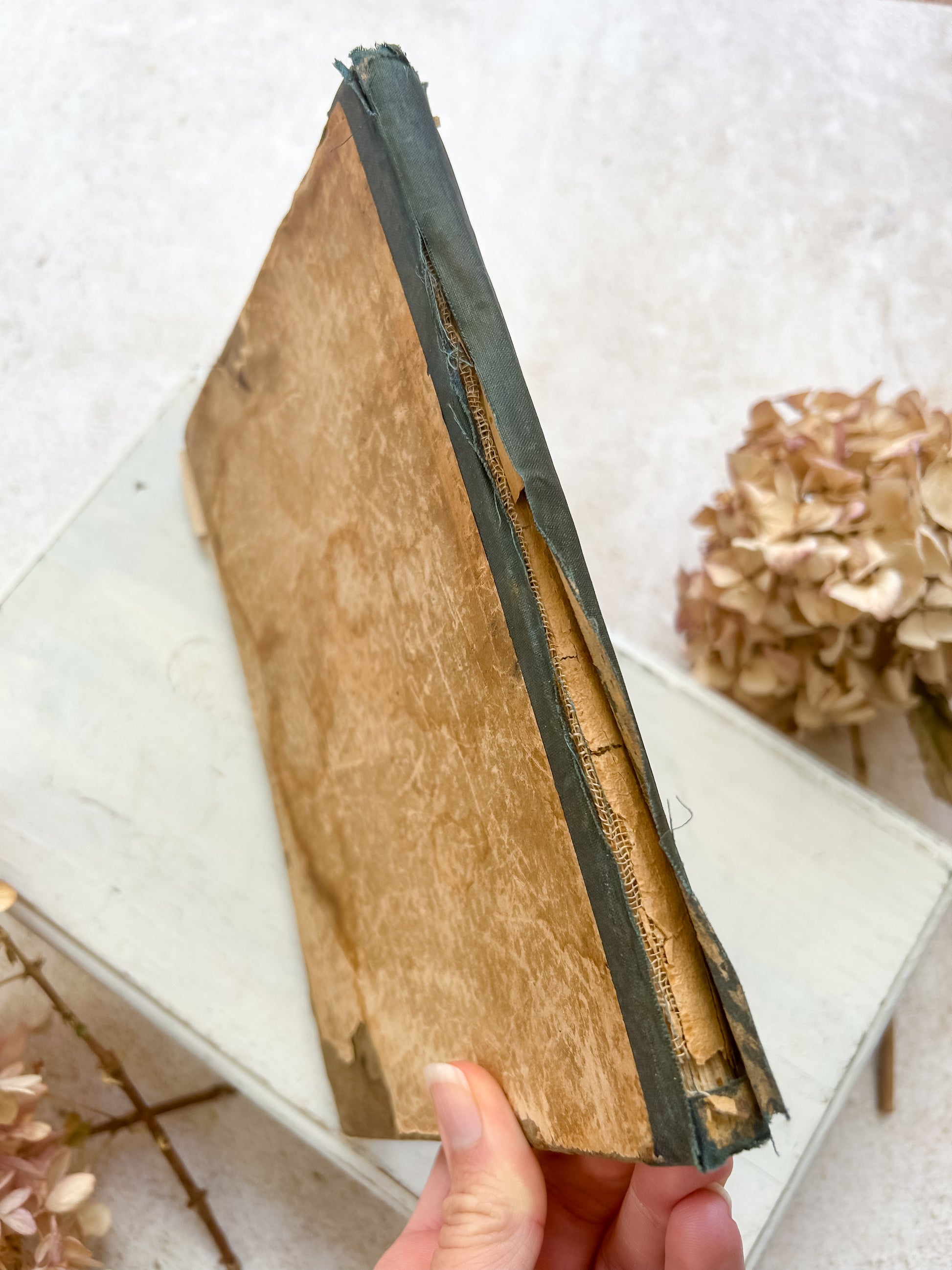Excellent patina on this worn, antique hymnal! Imagine all the hands that have held it and the voices that have sung with it . . .