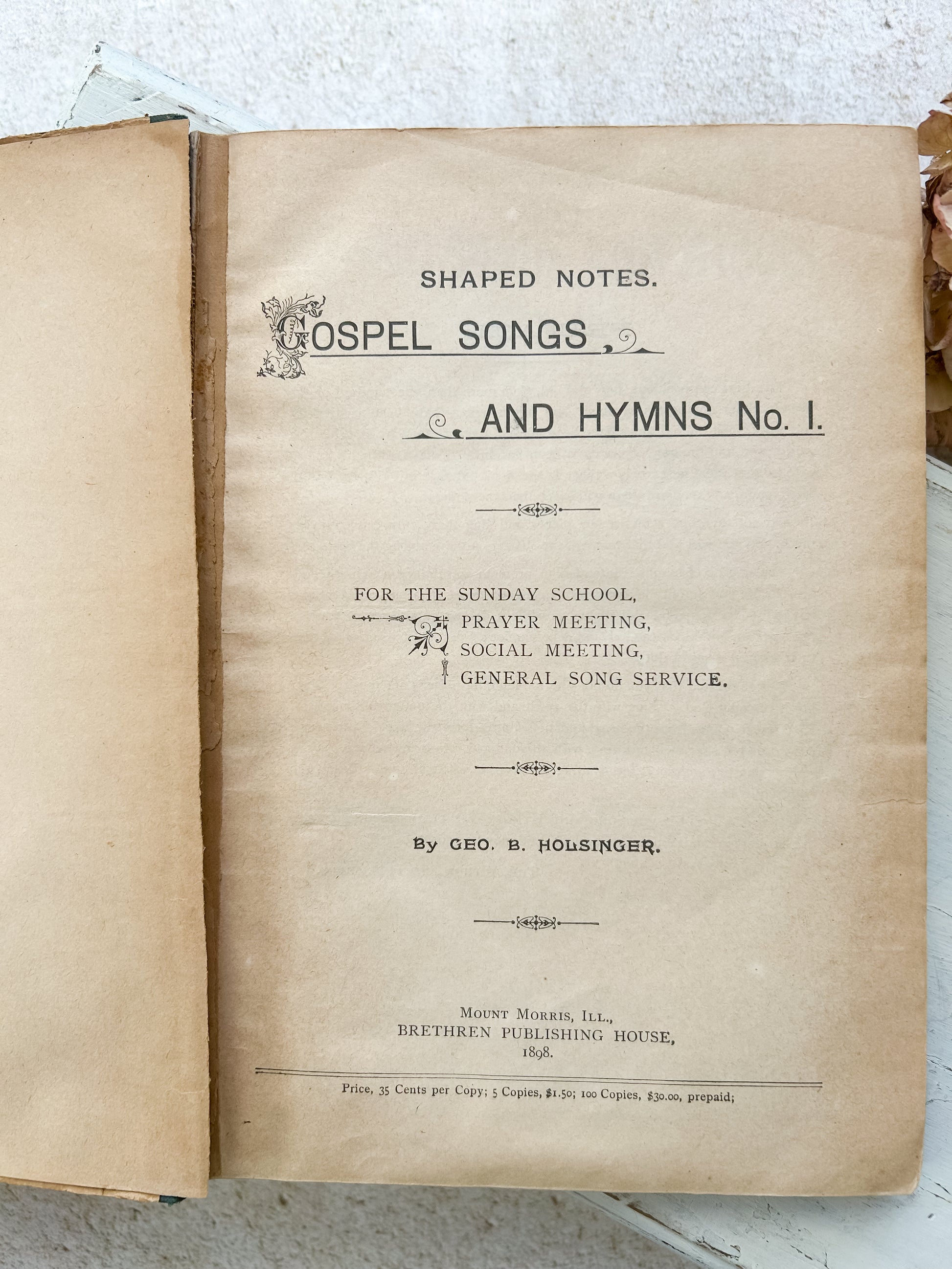 It's titled "Gospel Songs and Hymns No.1", and was published by the Brethren Publishing House in 1898.