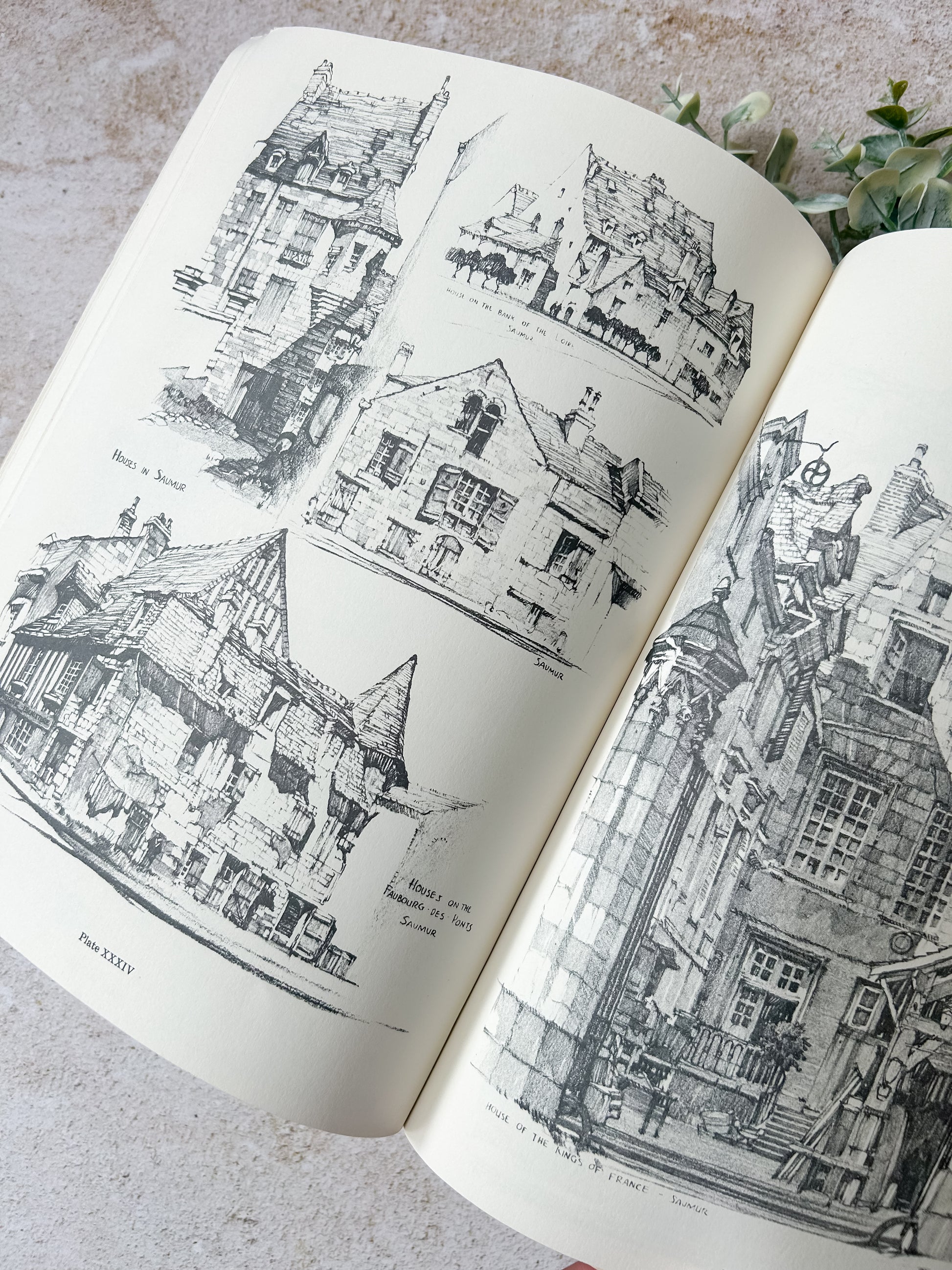 Originally printed in 1928, this paperback book features 50+ pages of pencil sketches of antique French architecture by Samuel Chamberlain. This is a paperback copy of the limited-edition reprint from 1981, and is very hard to find elsewhere online.