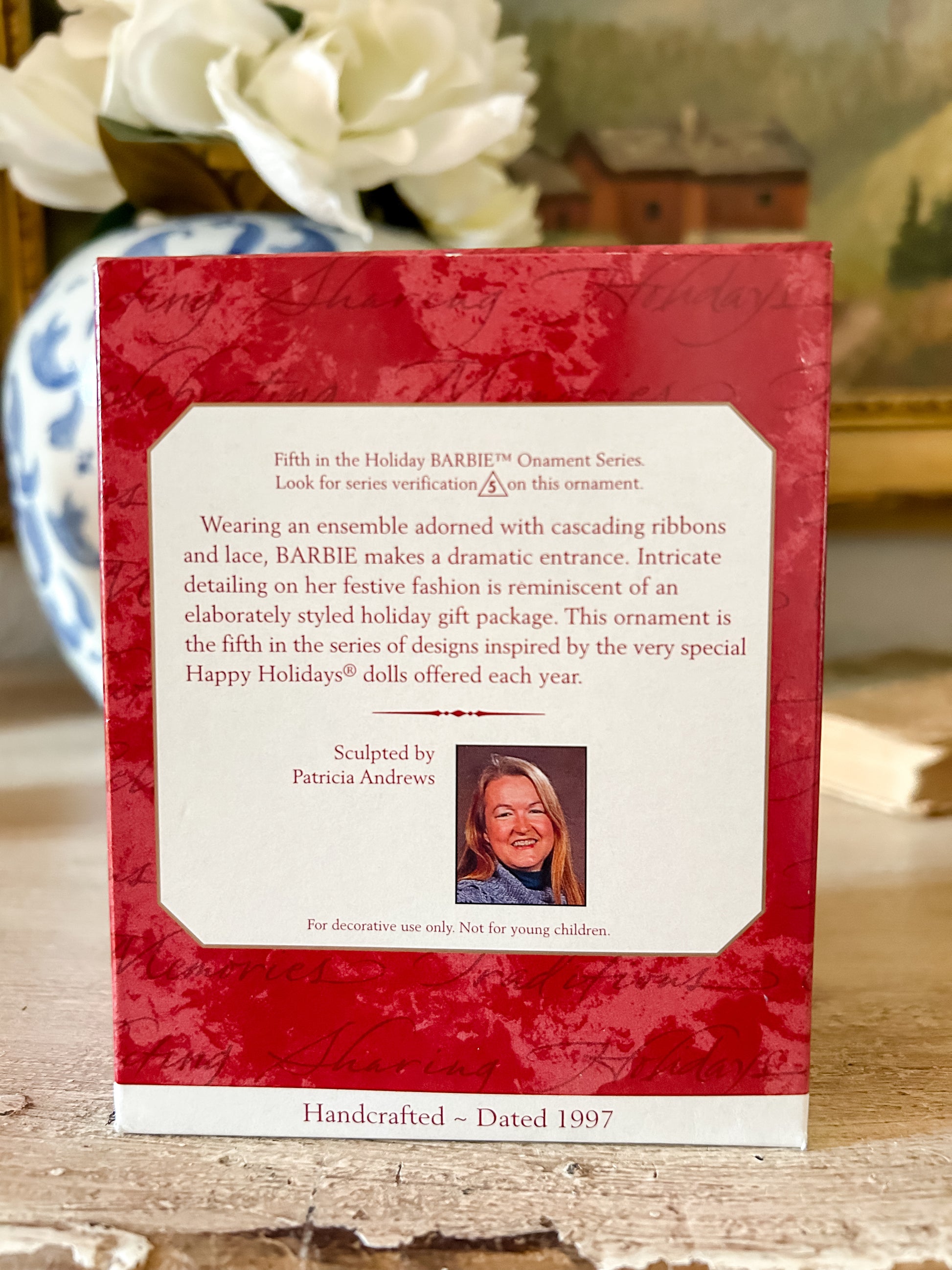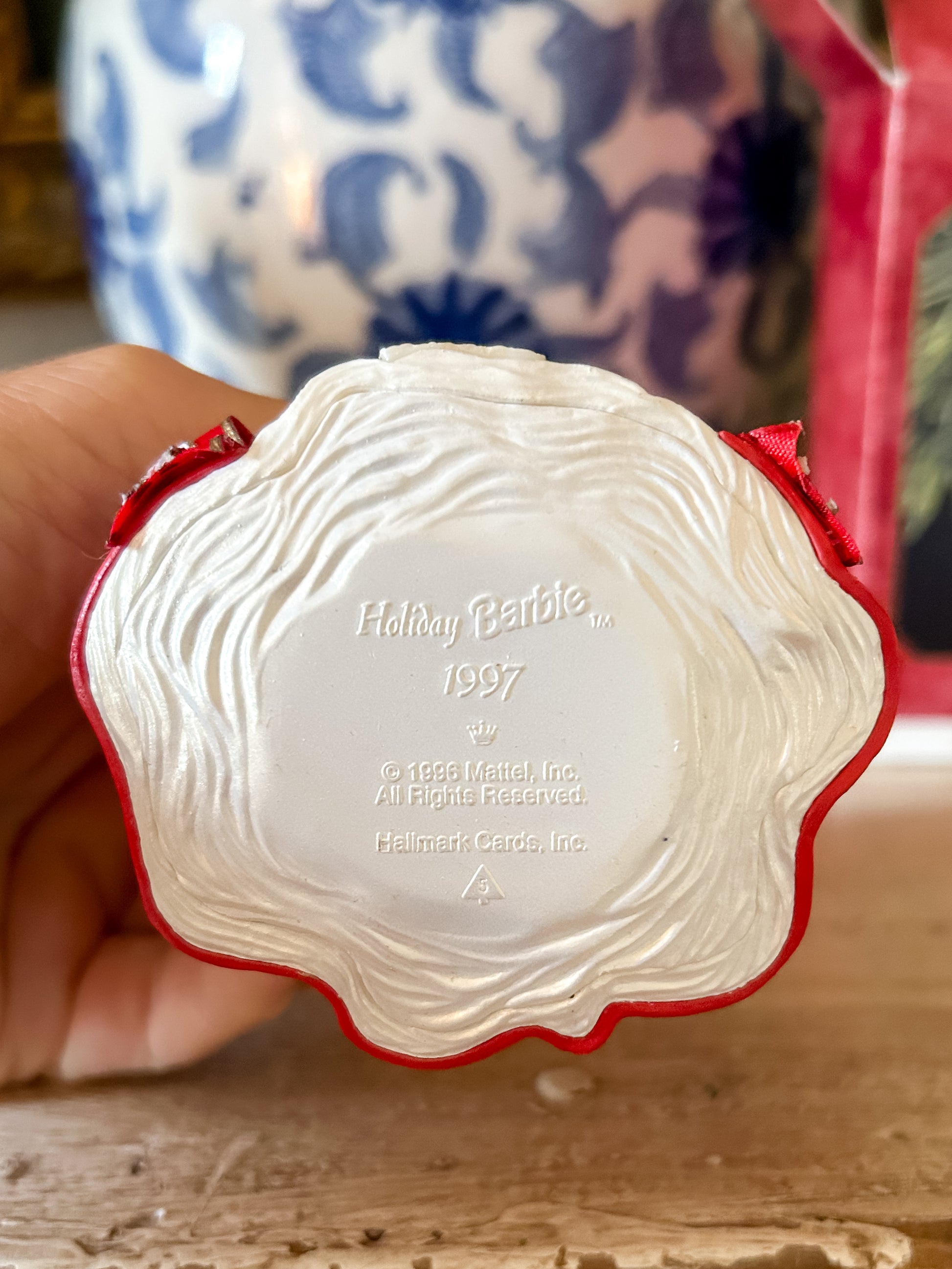 Vintage Holiday Barbie Hallmark Keepsake Ornament from 1997, complete with its original box and all packaging. The ornament and box are in mint condition.