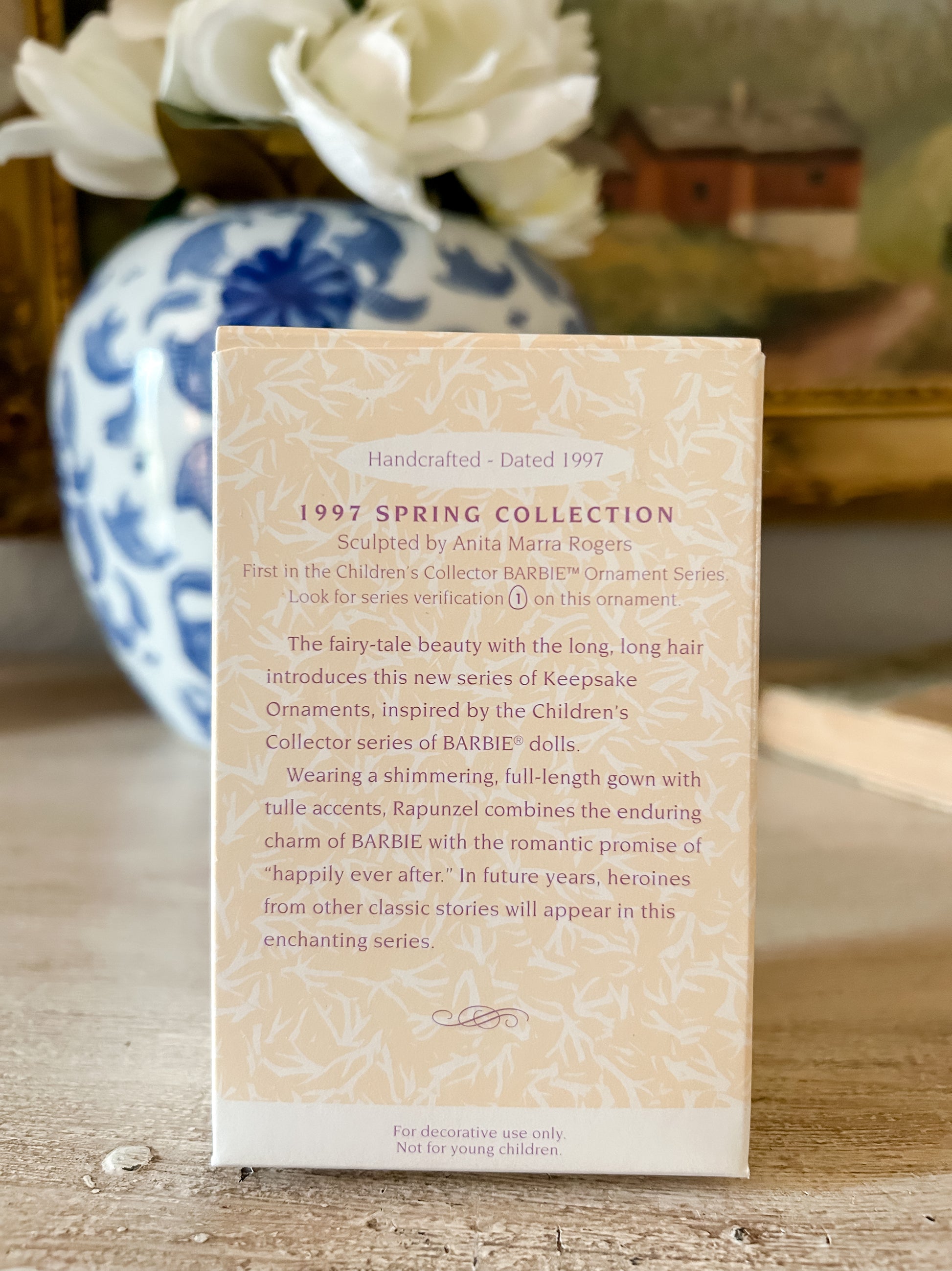 Vintage Barbie as Rapunzel Doll ornament, from the Children's Collector Series, Hallmark Keepsake Ornament from 1997. Complete with its original box and all packaging. The ornament and box are in mint condition.