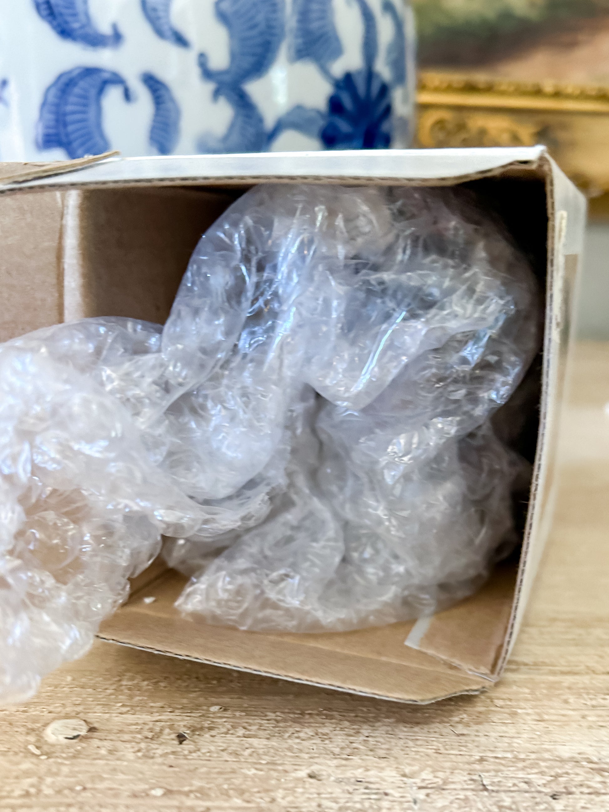 The original box is included, but not the styrofoam packaging. The box may show some wear and have extra stickers on it. The figurine is in good condition with no chips or breaks.