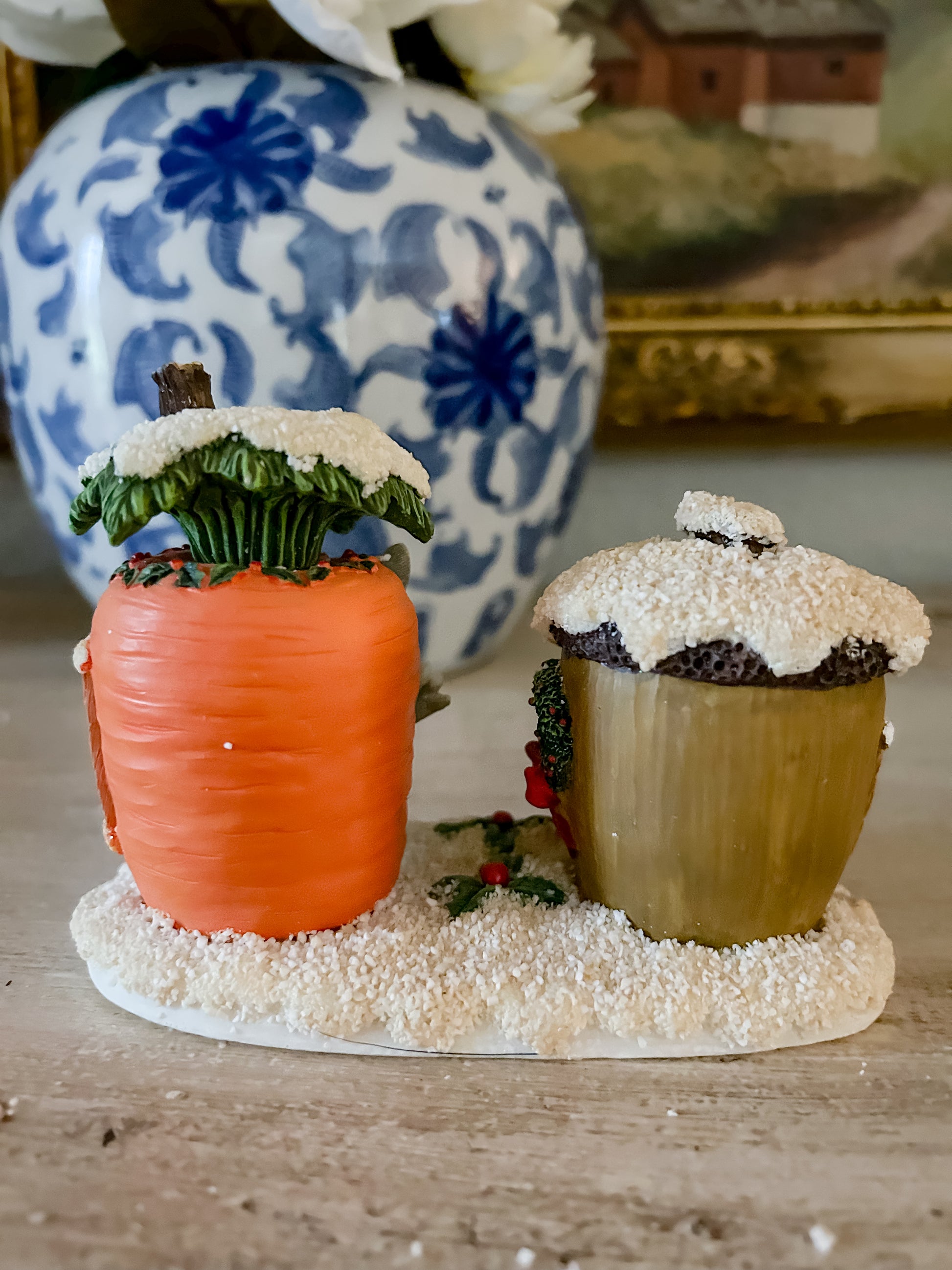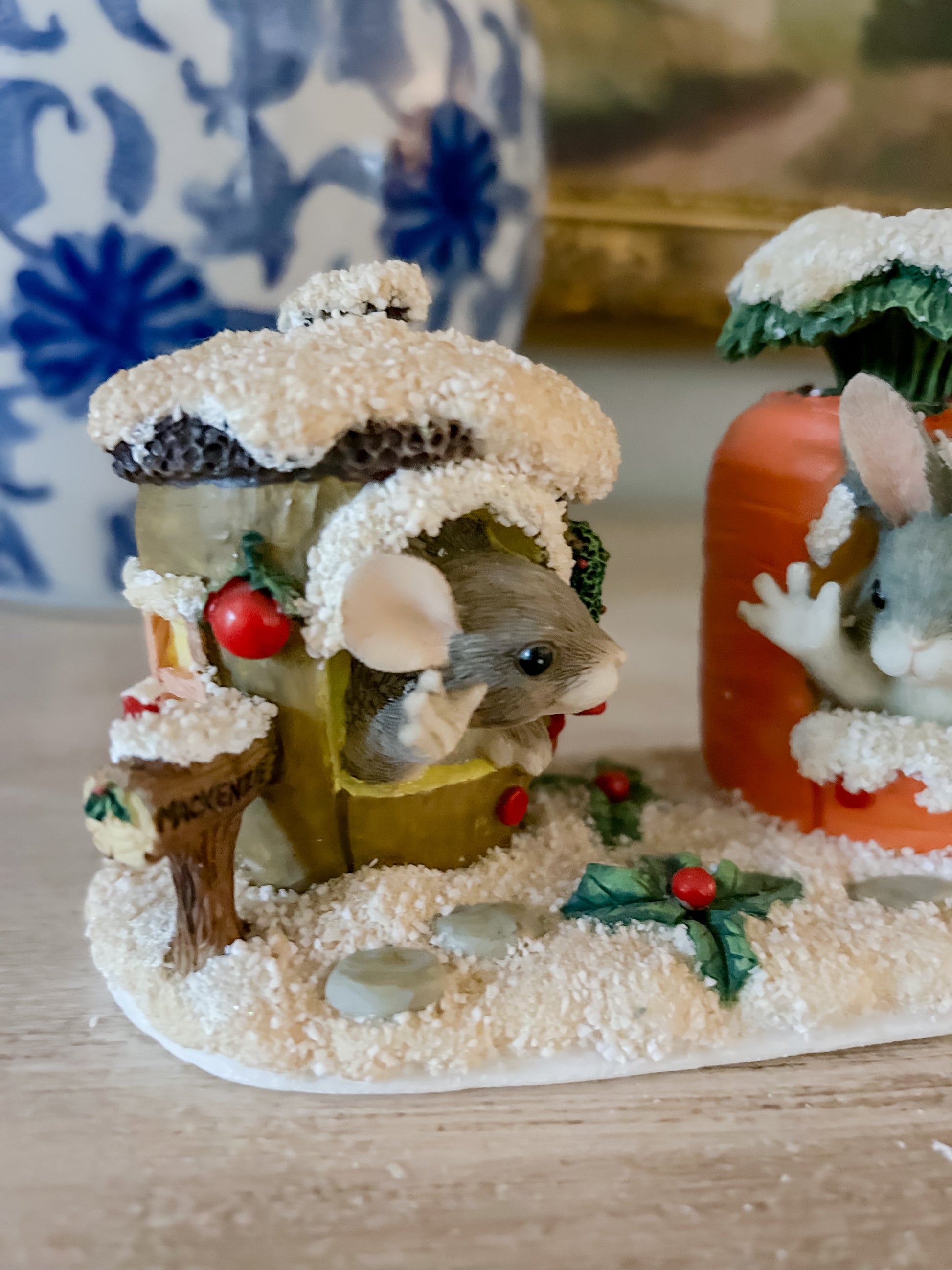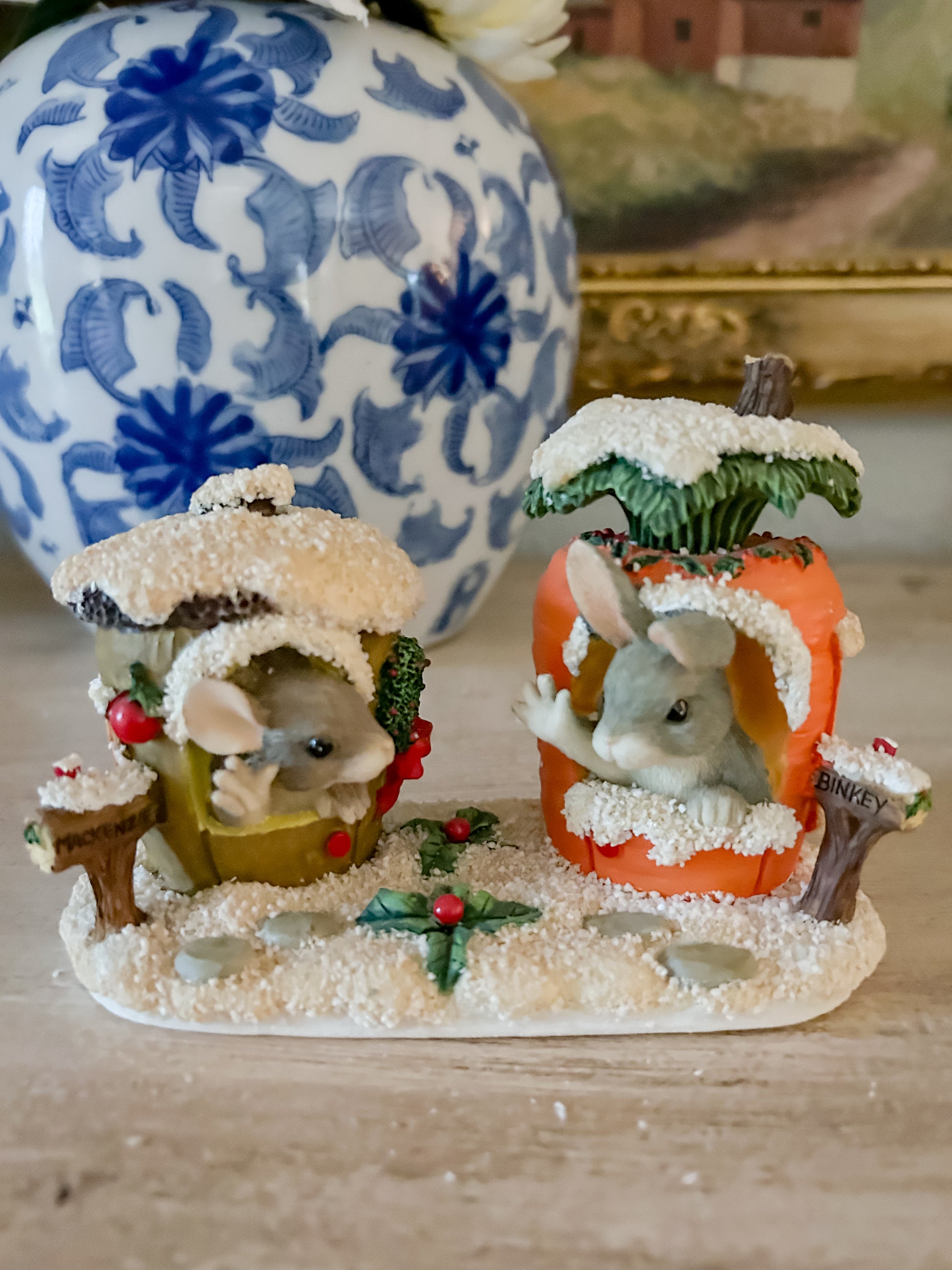 This figurine is Merry Christmas From Our House to Yours 87/622, featuring Binky Rabbit inside his carrot house, saying hello to Mackenzie Mouse inside her nut house. It's a slighty larger design as well.