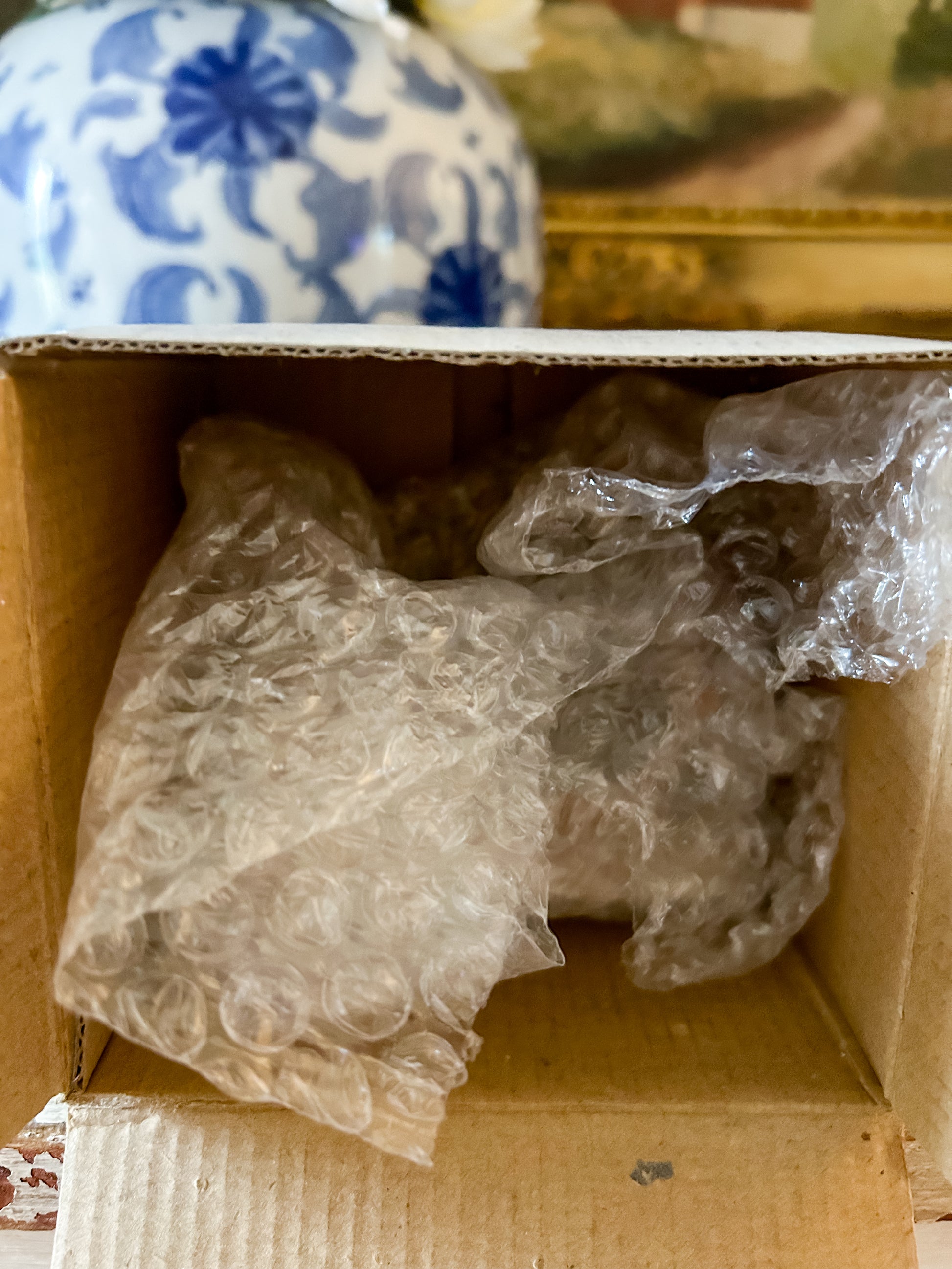 The original box is included but not styrofoam packaging. The box may show some wear and have extra stickers on it. The figurine is in good condition with no chips or breaks.