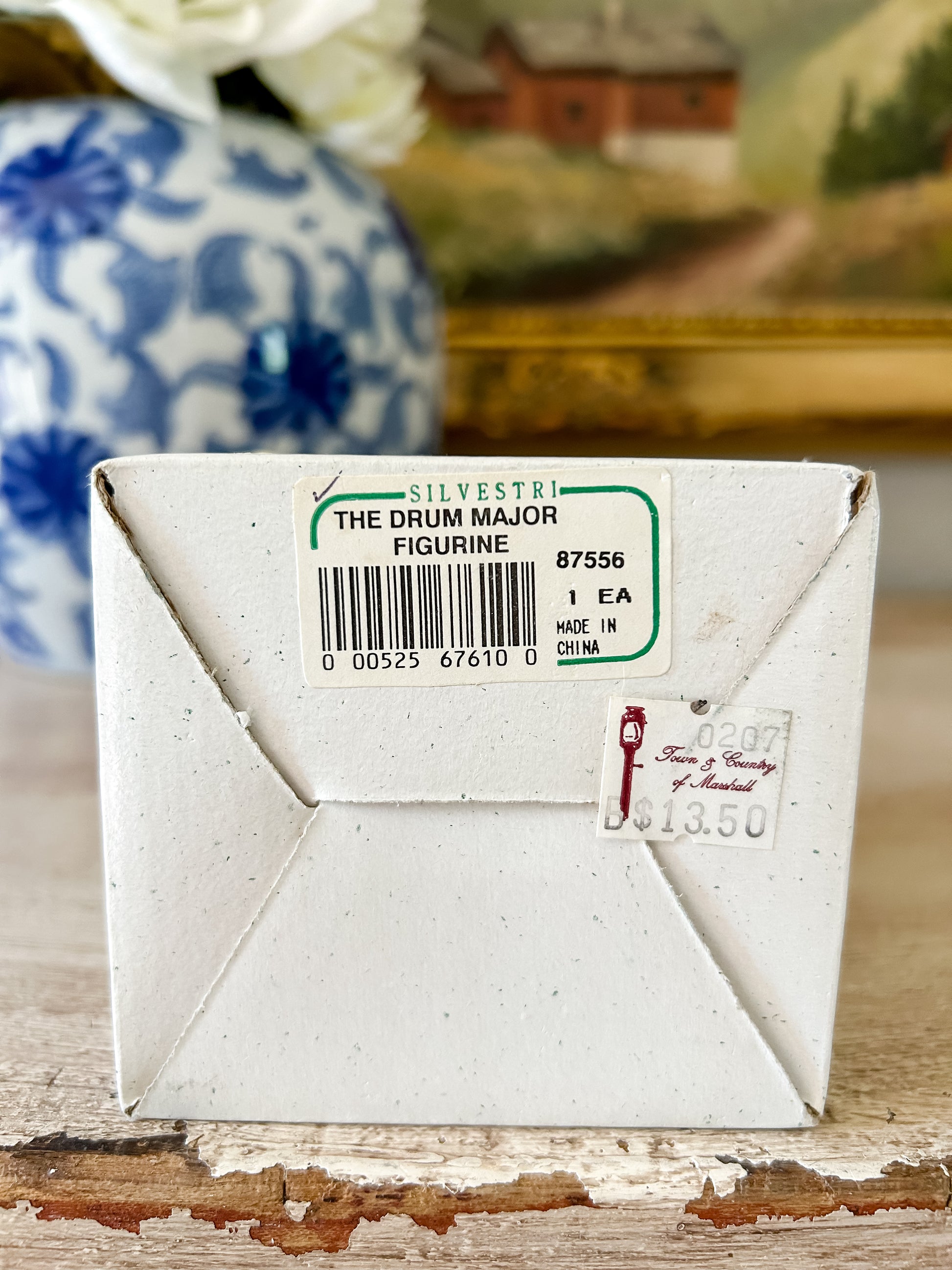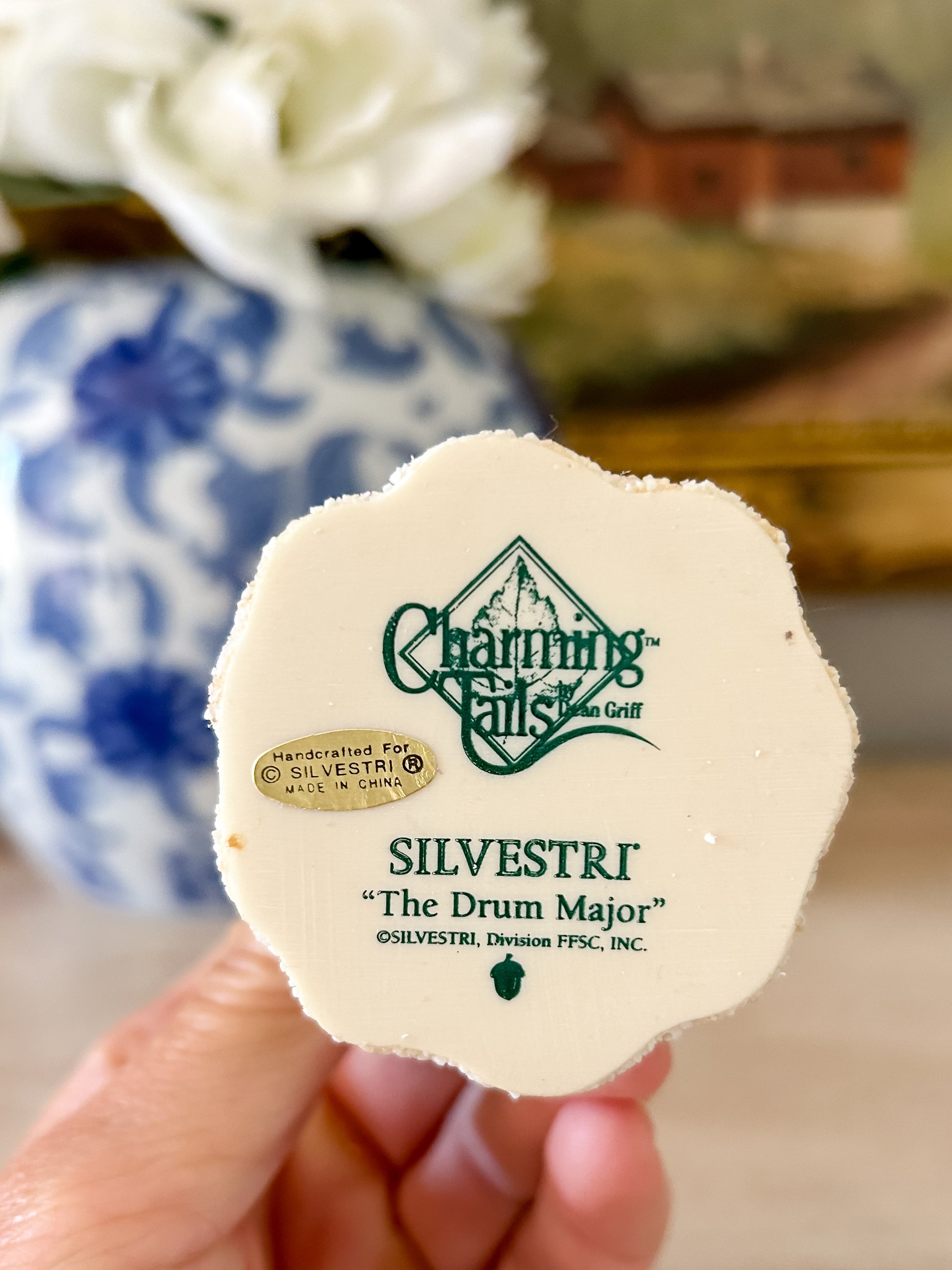 This figurine is The Drum Major 87/556, and is from when the Silvestri company was producing the line (pre-1996). It features the racoon character of the line.