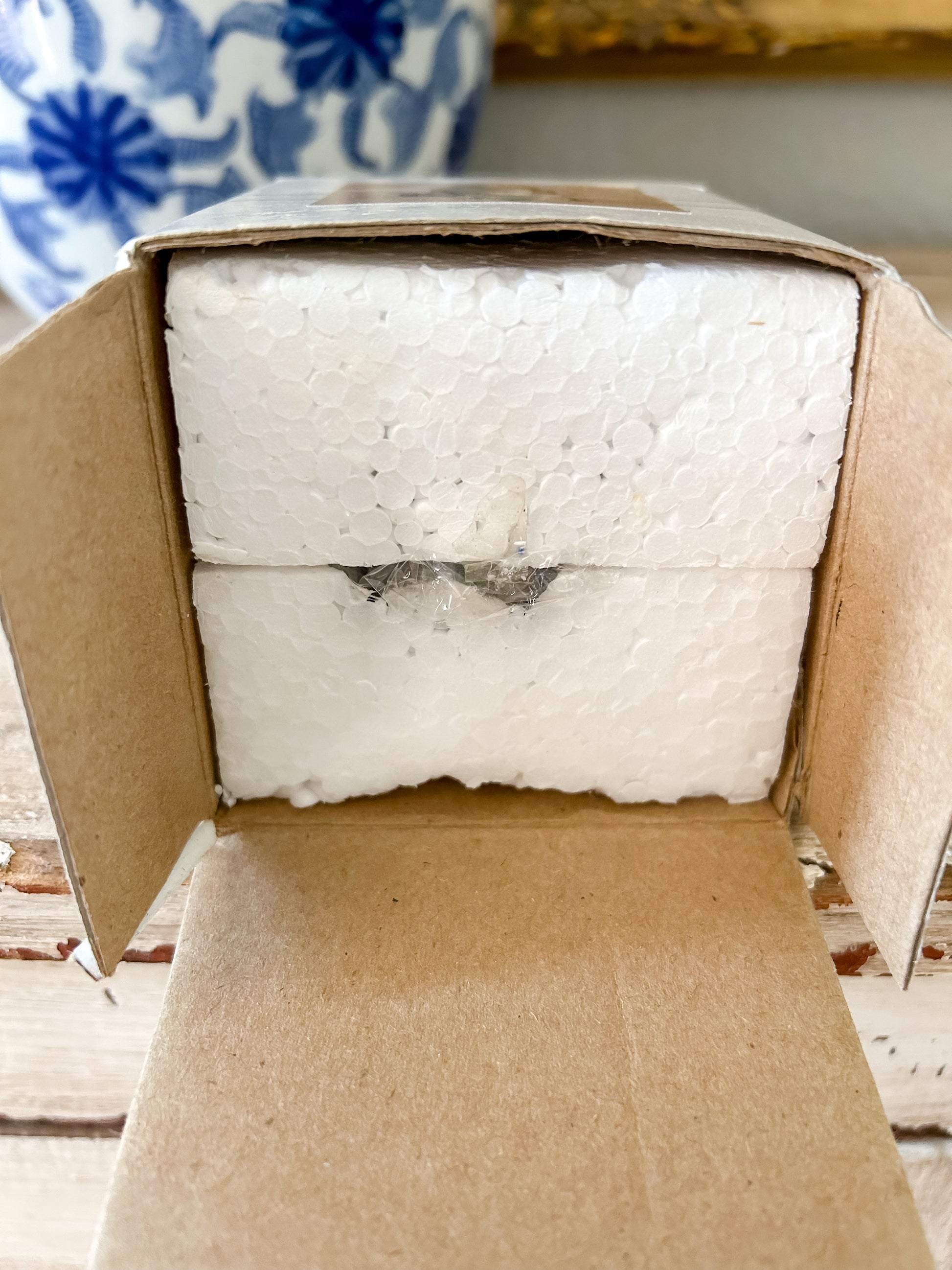 The original box is included, along with the styrofoam packaging. The box may show some wear and have extra stickers on it. The figurine is in good condition with no chips or breaks.
