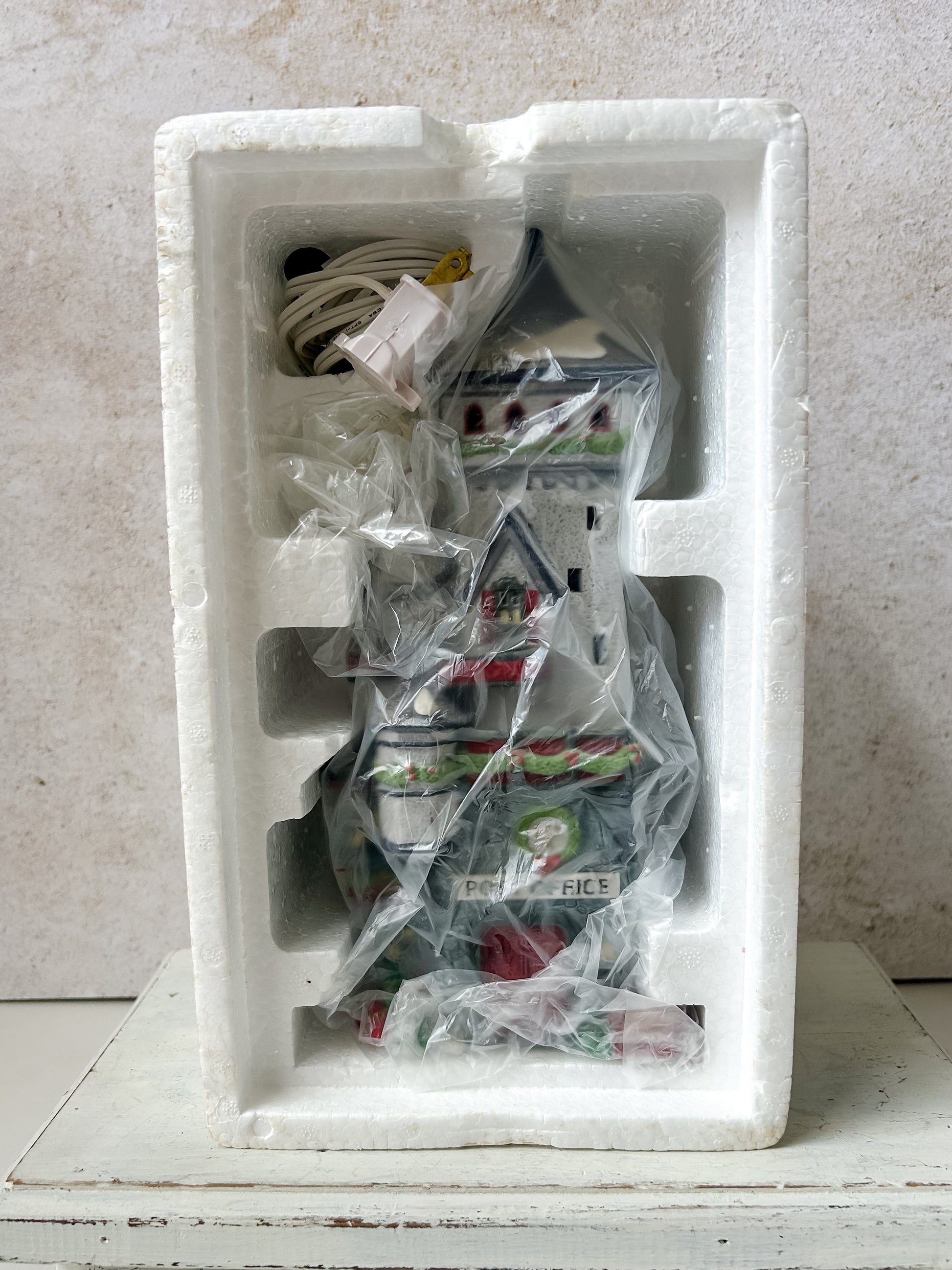 An excellent condition older design, that also adds extra height to your village display! The North Pole Post Office was originally released in 1992 and retired in 1999. The building is in excellent condition and comes with the light cord, packaging, and original box