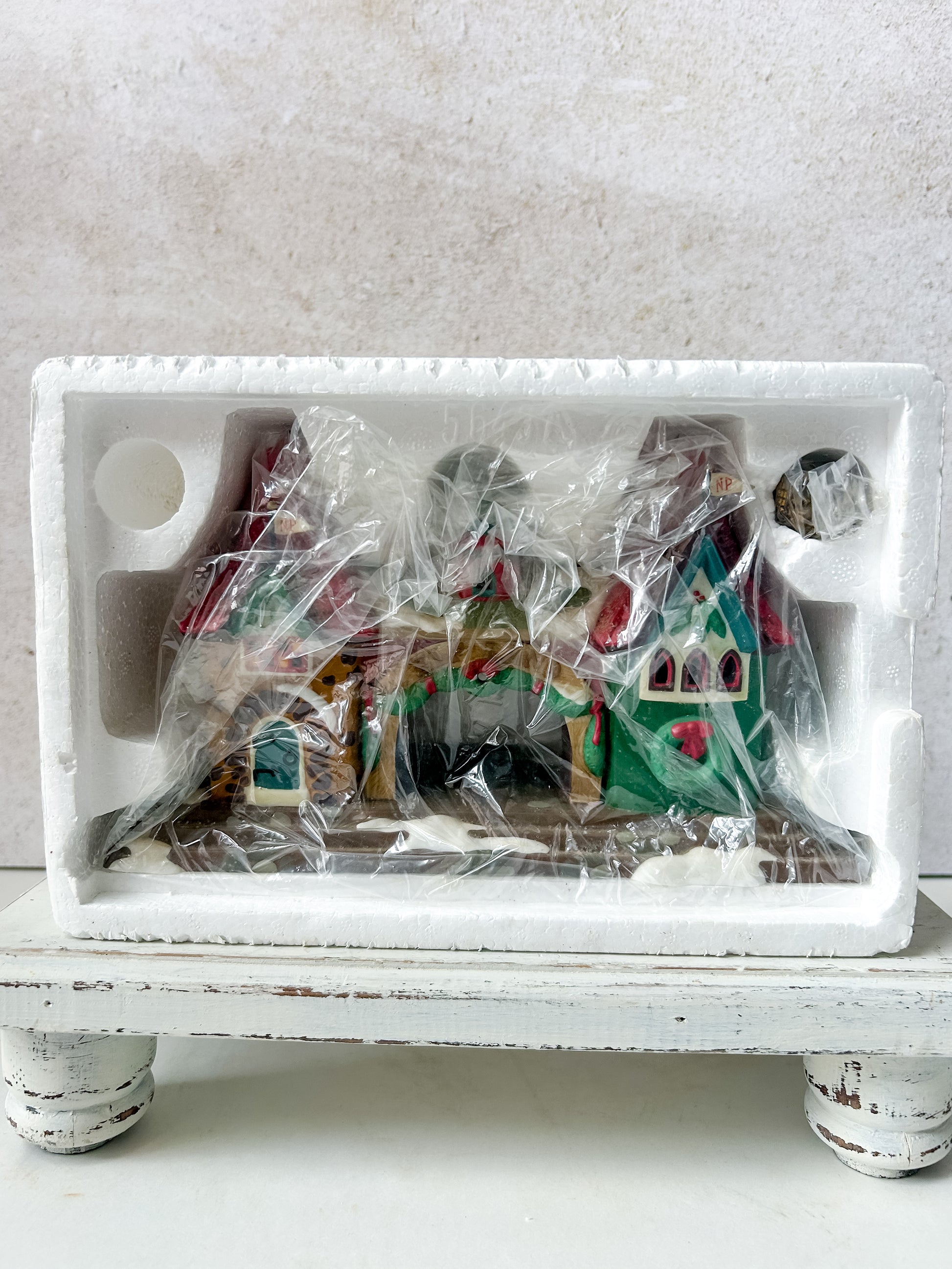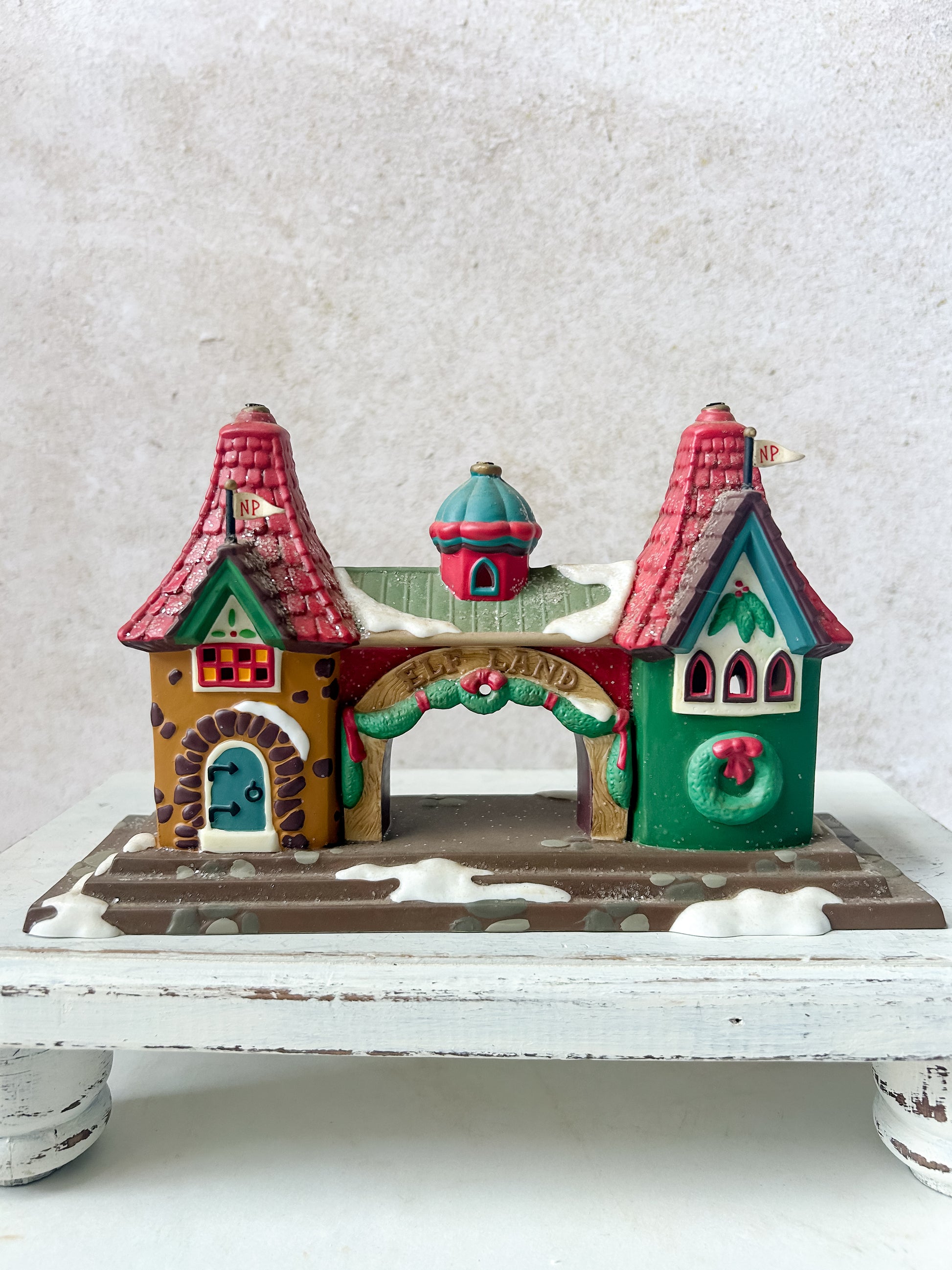 The perfect finishing touch to the North Pole Series! This "Welcome to Elf Land" gate is in excellent condition and includes the original hanging lanterns. It also comes stored in its original box. This design was released in 1998 and retired in 2005. Please note this is not a lighted figure.