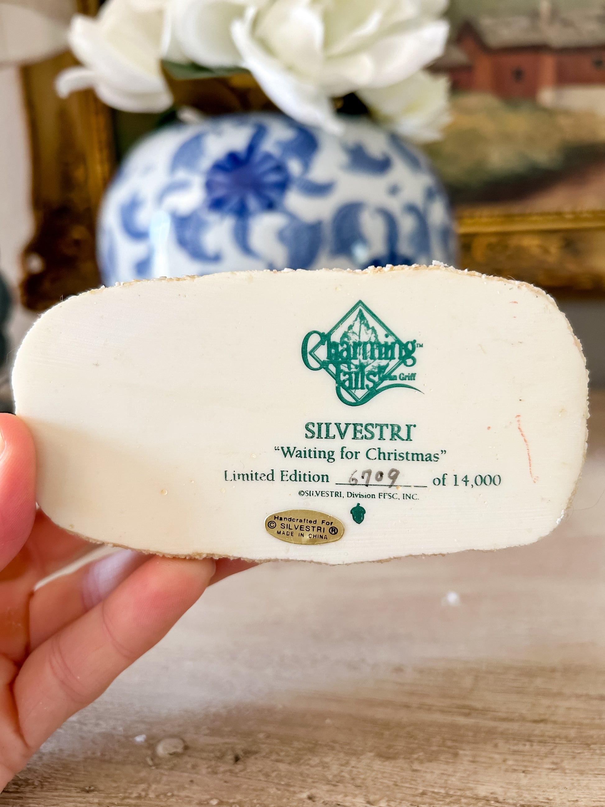 This figurine is Waiting for Xmas 87/496. This figurine is an older and limited design, hand numbered as 6,709 of 14,000.