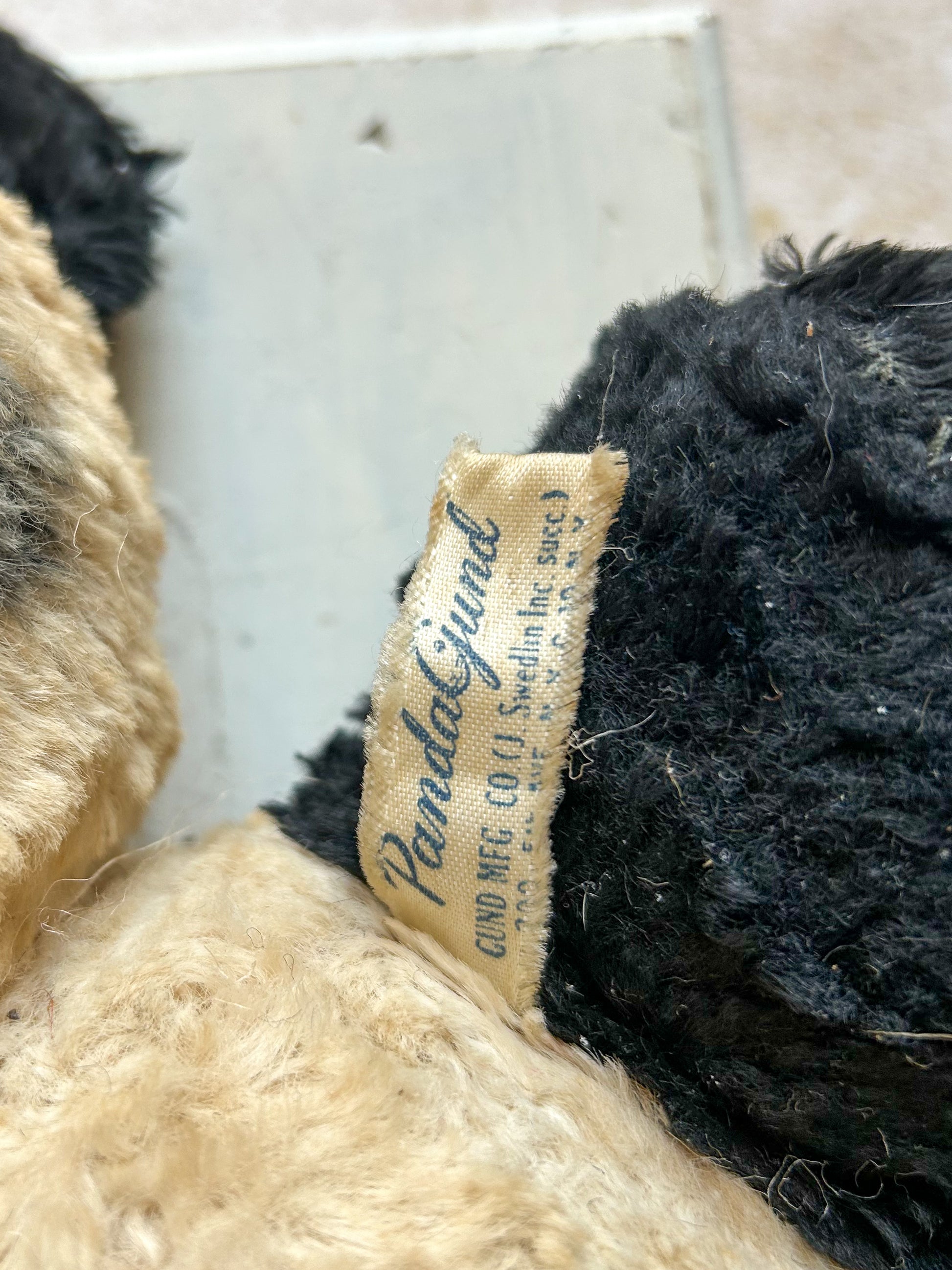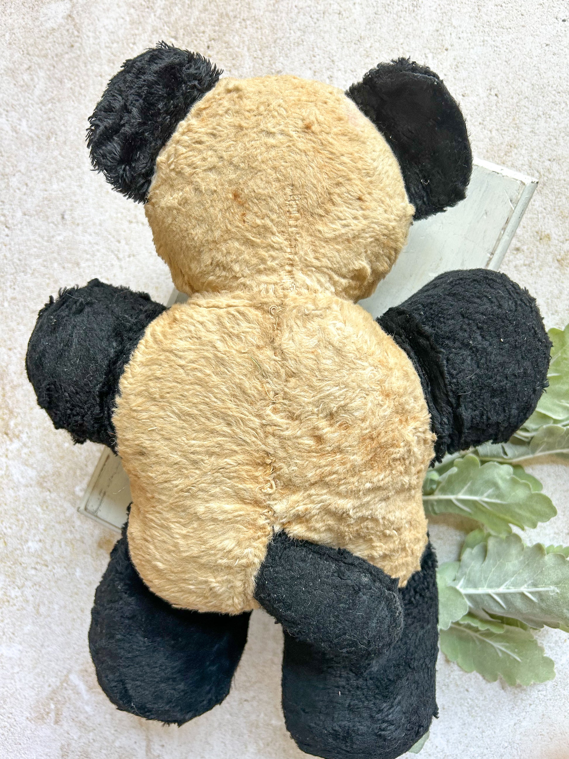 Estimated to be from the 1950's, this vintage Panda bear comes with his original Gund tag. He's worn but the seams are sturdy! His eyes are plastic and he measures 14" tall.